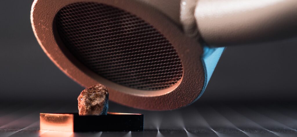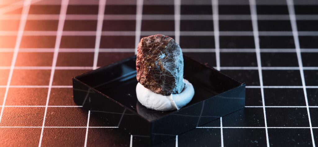 Radio-Barite is a variation of the Barite mineral, and, as the name suggests, it’s radioactive as it contains a small amounts of Radium-226. Since Radium is chemically very similar to Barium it can be easily incorporated into the Barite mineral structure during its formation, if it’s present in the surrounding environment, usually in trace amounts in groundwater or the surrounding uranium minerals. Its chemical formula is (Ba,Ra)SO₄, and its crystals usually have brownish colour and form an orthorhombic structure and score 3–3.5 on the Mohs scale of mineral hardness.
