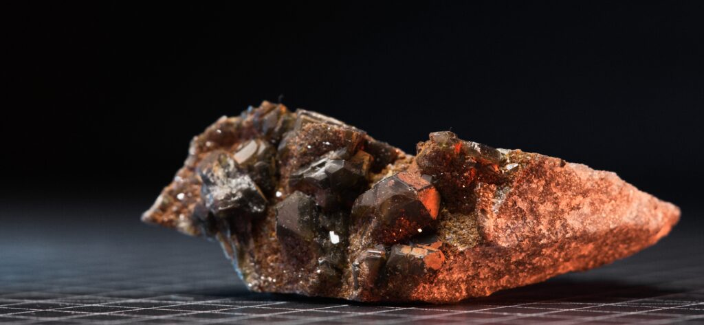 Radio-Barite is a variation of the Barite mineral, and, as the name suggests, it’s radioactive as it contains a small amounts of Radium-226. Since Radium is chemically very similar to Barium it can be easily incorporated into the Barite mineral structure during its formation, if it’s present in the surrounding environment, usually in trace amounts in groundwater or the surrounding uranium minerals. Its chemical formula is (Ba,Ra)SO₄, and its crystals usually have brownish colour and form an orthorhombic structure and score 3–3.5 on the Mohs scale of mineral hardness.